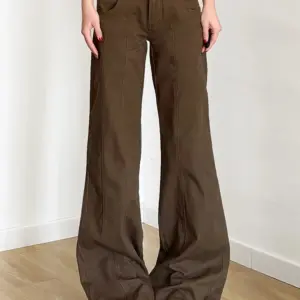Brown Wide Leg Women’s Jeans Y2K Grunge Style Low Rise Baggy Denim Pants Vintage Retro Casual Streetwear Korean Fashion Trousers