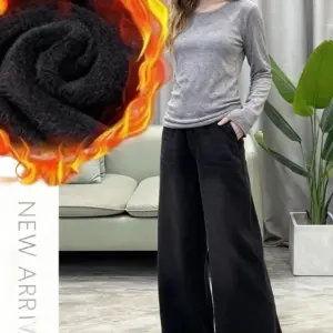 Winter Fleece Lined Jeans for Woman Y2k Pants 2025 Wide Leg Blue Loose Straight Trousers Pear Shape Body Comfort Fashion Trend
