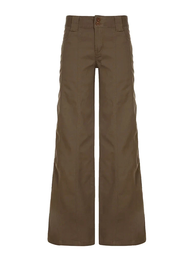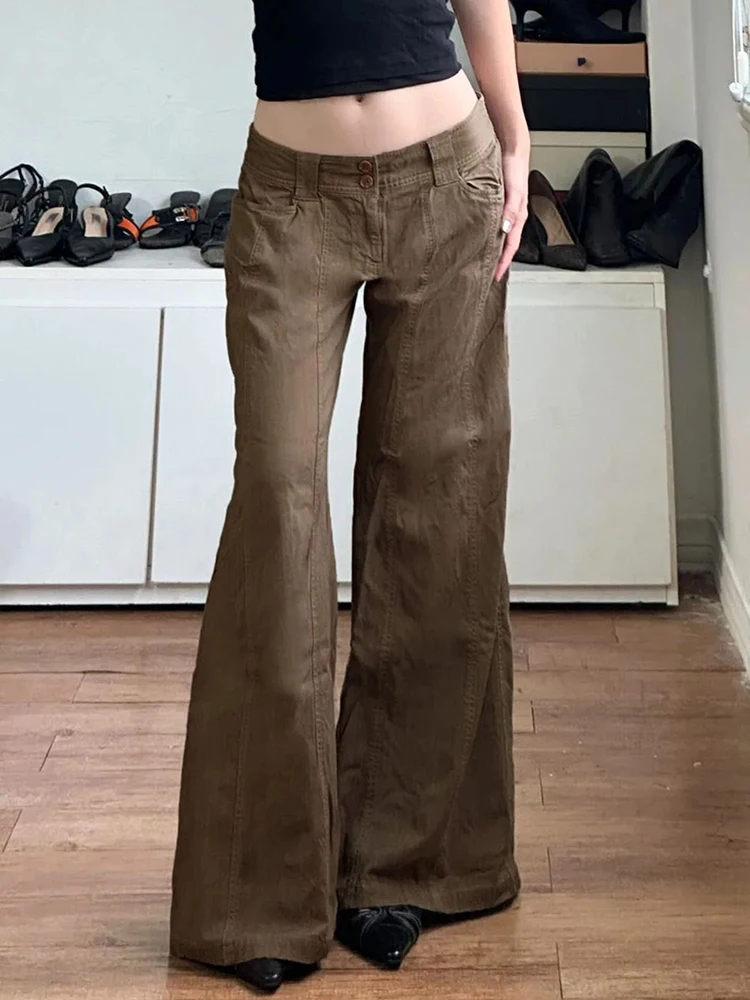 Brown Wide Leg Women’s Jeans Y2K Grunge Style Low Rise Baggy Denim Pants Vintage Retro Casual Streetwear Korean Fashion Trousers