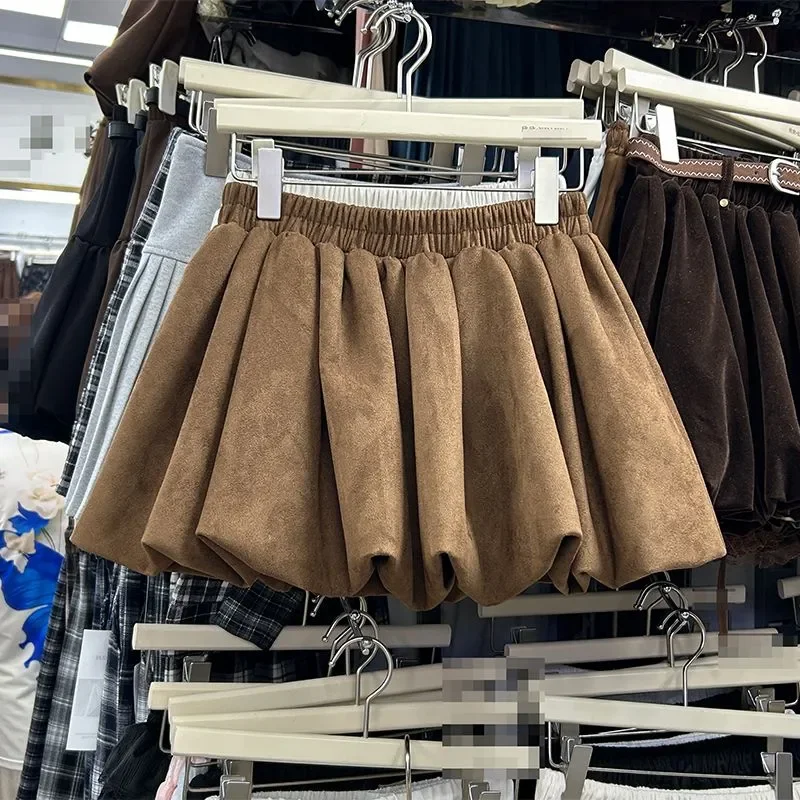 Imitation Suede Flower Bud Skirt Women’s New Autumn Winter Loose Versatile A-line Puffy Short Skirt