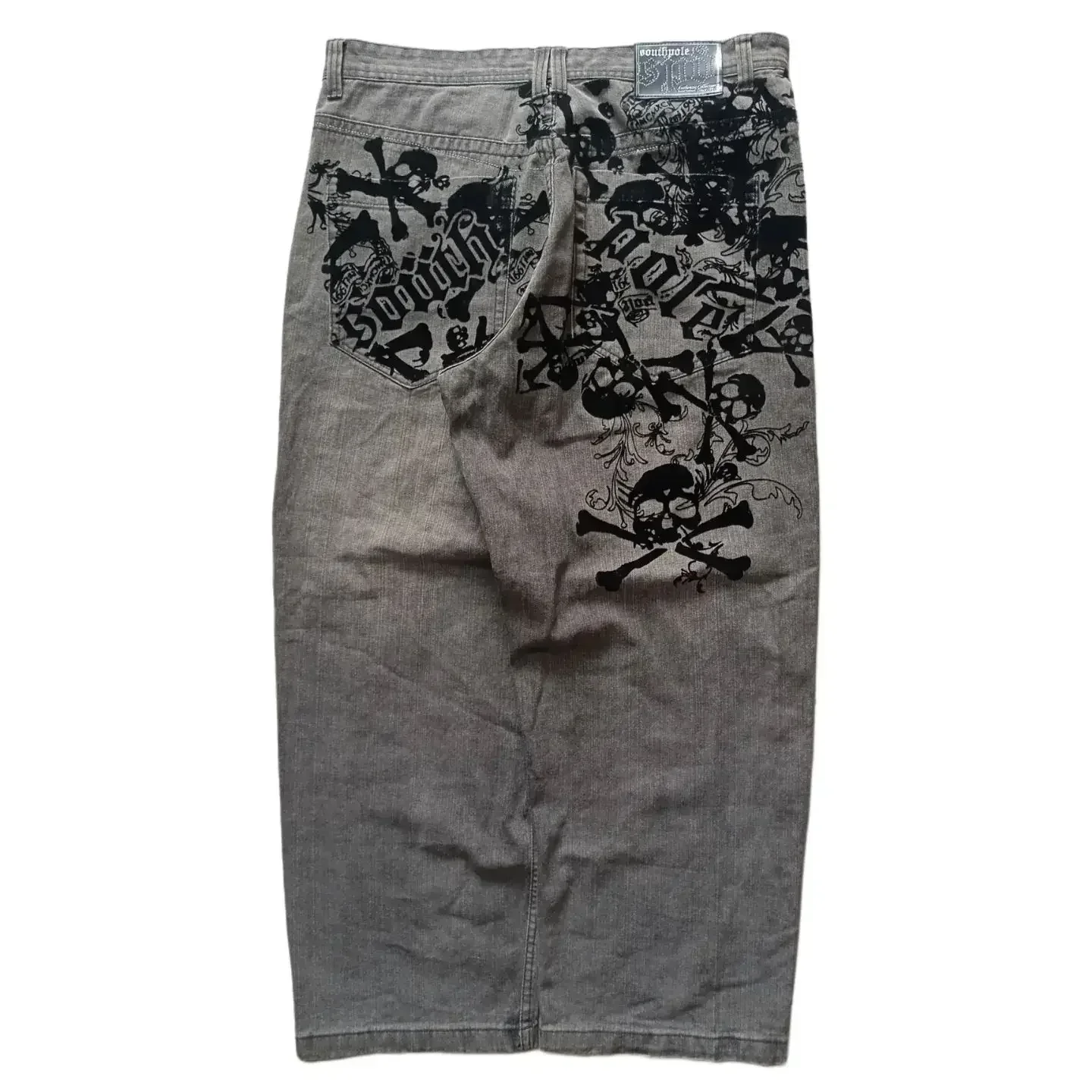 Retro New Southpole Jeans Skull Watermark Loose Jeans Men's and Women's Y2K Harajuku Gothic Hip Hop Skateboard Pants Street Wear
