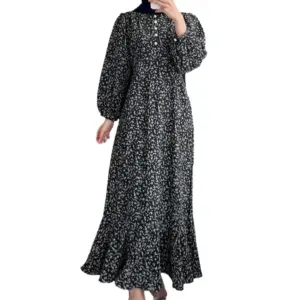 Elegant Pleated Long Dress Long Sleeveed Lace Up Dresses for Middle Eastern Women Spring and Summer Clothes
