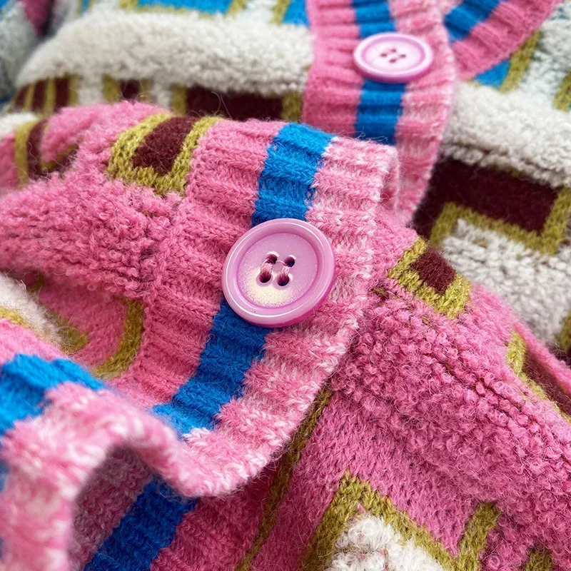 Embroidery Patchwork High Street Thick Knit V-Neck Women’s Cardigan Sweater Single Breasted Cardigan For Women Clothing Winter